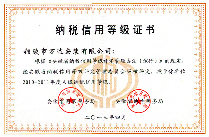 納稅信用等級證書
